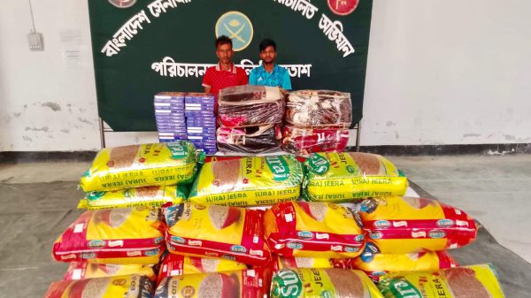 জৈন্তাপুর প্রতিনিধি: সিলেটের জৈন্তাপুর উপজেলার হরিপুর গ্যাস ফিল্ড আর্মি চেকপোস্টে তল্লাশি চালিয়ে বিপুল পরিমাণ ভারতীয় অবৈধ জিরা,কম্বল ও মেহেদীসহ দুইজনকে আটক করেছে বাংলাদেশ সেনাবাহিনী। সেনাক্যাম্প সূত্র জানায়, সোমবার (২৩ ফেব্রুয়ারী) সকাল ৯টার দিকে হরিপুর গ্যাস ফিল্ড আর্মি ক্যাম্প–২৭ বীর ইউনিটের একটি দল চেকপোস্টে ডিউটিরত অবস্থায় সন্দেহভাজন যাত্রীবাহী দুটি হাইয়েস গাড়িতে তল্লাশি চালায়।এ সময় ঢাকা মেট্রো-চ