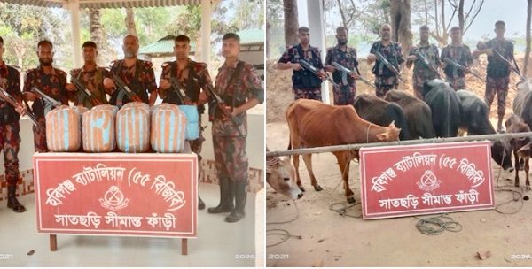 এছাড়াও পৃথক আরেকটি বিশেষ অভিযানে গুইবিল বিওপির দায়িত্বপূর্ণ এলাকার গুইবিল নামক স্থানে অভিযান চালিয়ে ৫টি ভারতীয় চোরাই গরু জব্দ করা হয়। জব্দকৃত মাদকদ্রব্য ও গরু গুলো আইনানুগ প্রক্রিয়ার মাধ্যমে হবিগঞ্জ জেলা কাস্টমস ও মাদকদ্রব্য নিয়ন্ত্রণ অফিসে হস্তান্তরের কার্যক্রম চলমান। ৫৫ বিজিবির অধিনায়ক লেফটেন্যান্ট কর্নেল তানজিলুর রহমান বিষয়টি নিশ্চিত করেন।