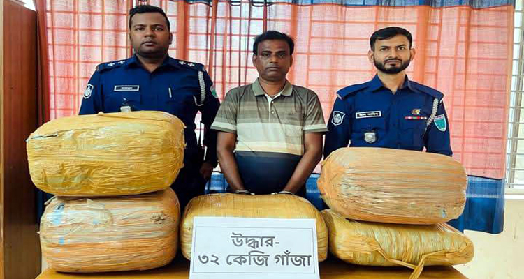 মাধবপুরে ৩২ কেজি গাঁজাসহ মাদক ব্যবসায়ী গ্রেফতার