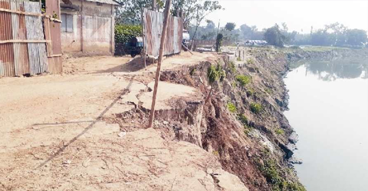 জগন্নাথপুরে নদীর পেটে গ্রামীণসড়ক, ৩০ গ্রামের লাখো মানুষ দু র্ভো গে
