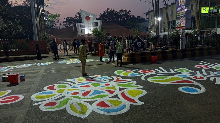 মহান একুশে: আলপনায় সেজেছে সিলেটের সড়ক