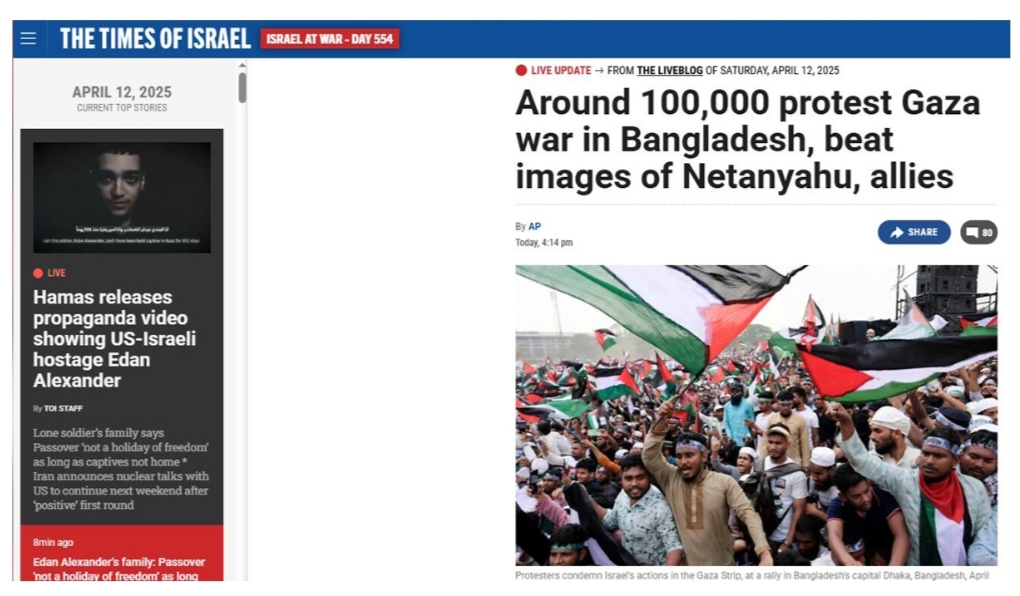 ইসরায়েলি গণমাধ্যমে ঢাকার বিক্ষোভ সমাবেশের খবর