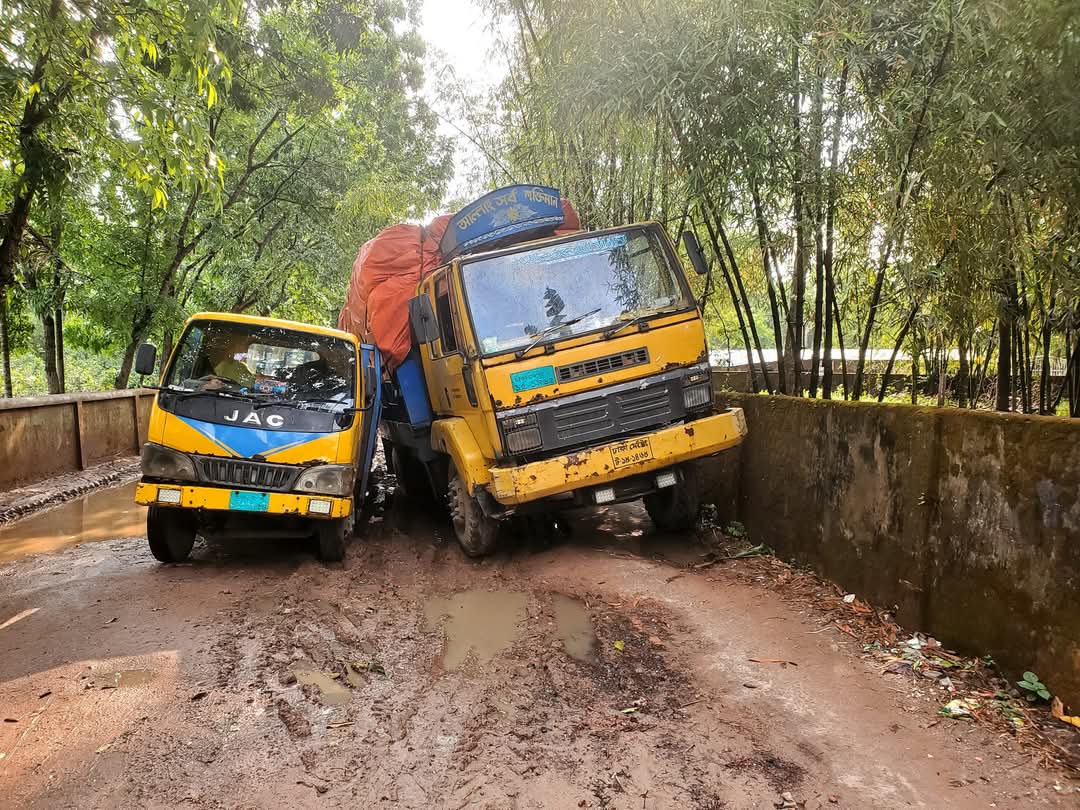 দুর্ভোগের যেনো শেষ নেই কাজীগঞ্জবাজার থেকে মার্কুলী সড়কে