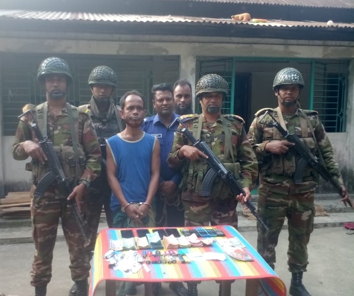 নবীগঞ্জে সেনাবাহিনীর অভিযানে ই য়া বা ব্যবসায়ী গ্রে ফতার