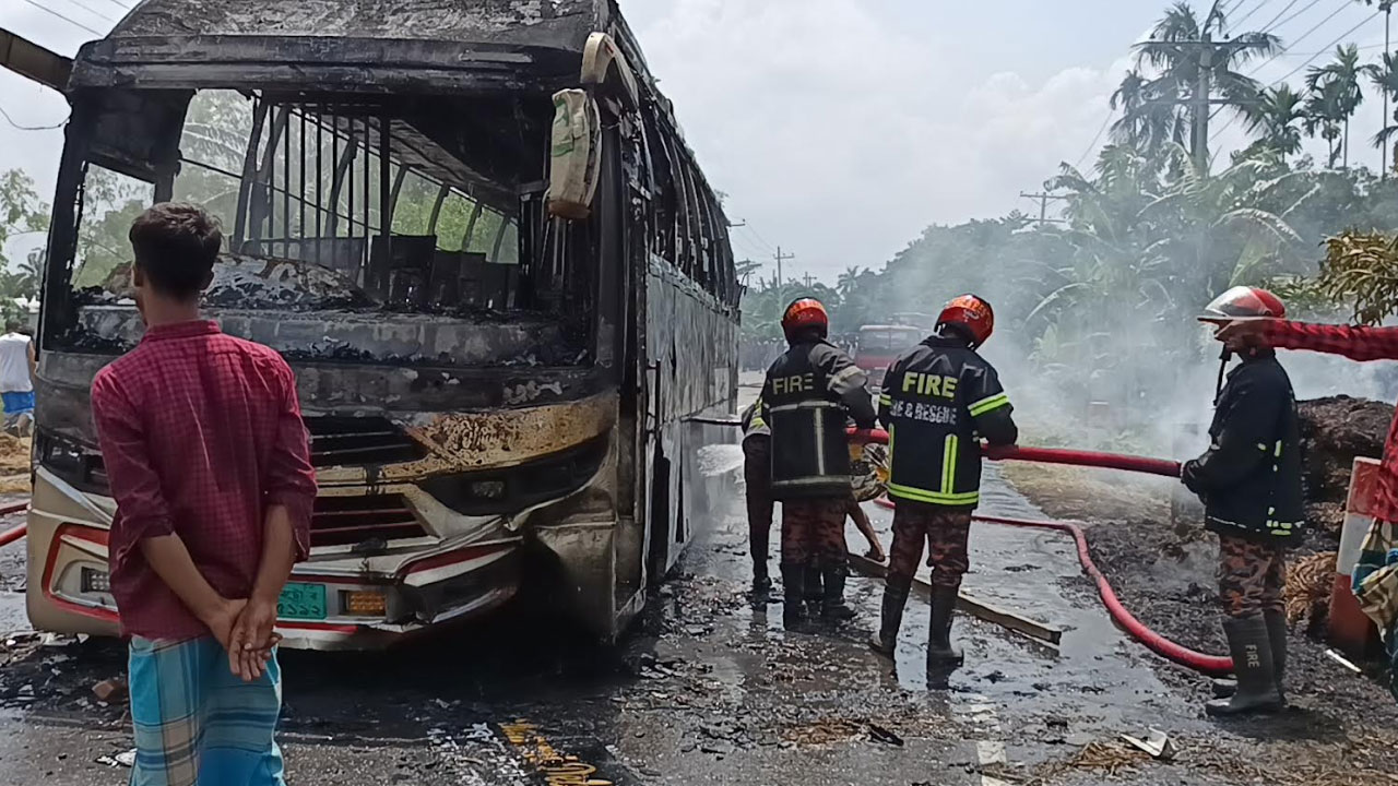 সড়ক দুর্ঘটনায় সাবেক সেনা সদস্য নিহত, বাসে আগুন দিল বিক্ষুব্ধ জনতা