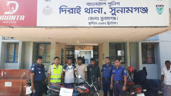 সুনামগঞ্জ প্রতিনিধি:: সুনামগঞ্জের দিরইয়ে চোরাই যাওয়া একটি মোটরসাইকেল উদ্ধারসহ চোর চক্রের সক্রিয় তিন সদস্যকে গ্রেফতার করা হয়েছে। বুধবার (১১ জুন) সকাল ৯ থেকে দুপুর ১২ পর্যন্ত উপজেলার বিভিন্ন জায়গায় অভিযান