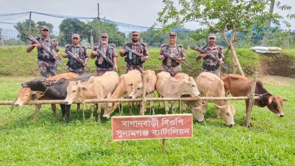 সুনামগঞ্জ প্রতিনিধি:: সুনামগঞ্জের দোয়ারাবাজার উপজেলার ইদুকোনা সীমান্ত এলাকা থেকে ভারত থেকে চোরাই পথে আনা ৯টি গরু জব্দ করেছে বর্ডার গার্ড বাংলাদেশ (বিজিবি)। মঙ্গলবার (১০ জুন) ভোরে বোগলাবাজার ইউনিয়নের দক্ষিণ ইদুকোনা